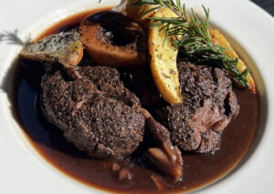 5-hour marrow-rich malbec braise, house demi with fingerling potatoes